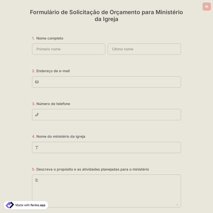 Veja este formulário de solicitação de orçamento para ministério da igreja e clique em "usar modelo" depois de se certificar de que é isso que você está procurando.