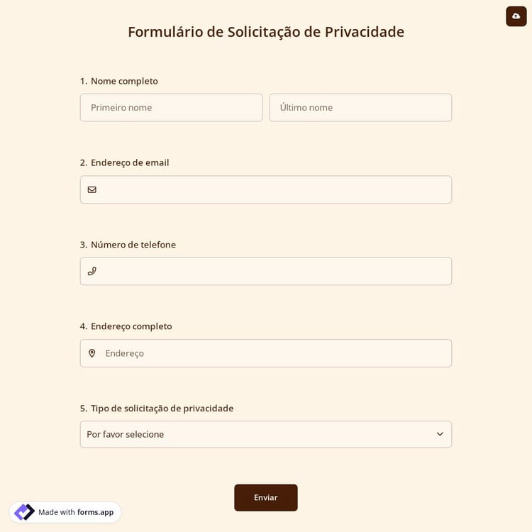Este formulário de solicitação de privacidade é gratuito e personalizável
