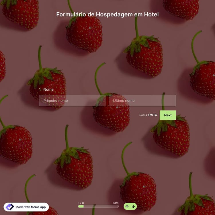Se você tem um hotel e deseja abrir reservas online, um formulário online de acomodação em hotel atenderá a todas as suas necessidades. Com um formulário de reserva, as pessoas podem reservar um quarto do seu hotel em qualquer lugar e a qualquer hora. Depois de criar seu formulário com o modelo de formulário de acomodação em hotel do forms.app, você pode permitir reservas online com facilidade e segurança.