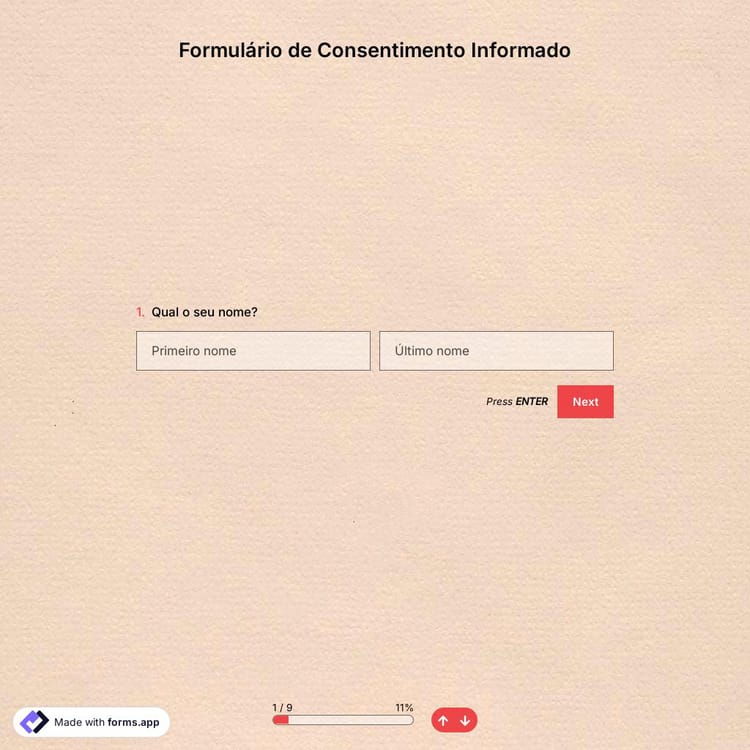 Na forma tradicional, o processo de obtenção de consentimentos informados pode ser difícil e demorar mais tempo devido à papelada. Felizmente, com um modelo de formulário de consentimento informado online, você poderá criar seu formulário e compartilhá-lo com facilidade e sem esforço. Desta forma, os potenciais participantes irão ler as informações solicitadas e preencher o formulário onde quiserem. Com o forms.app, você verá como é fácil atender aos requisitos de consentimento para sua pesquisa.