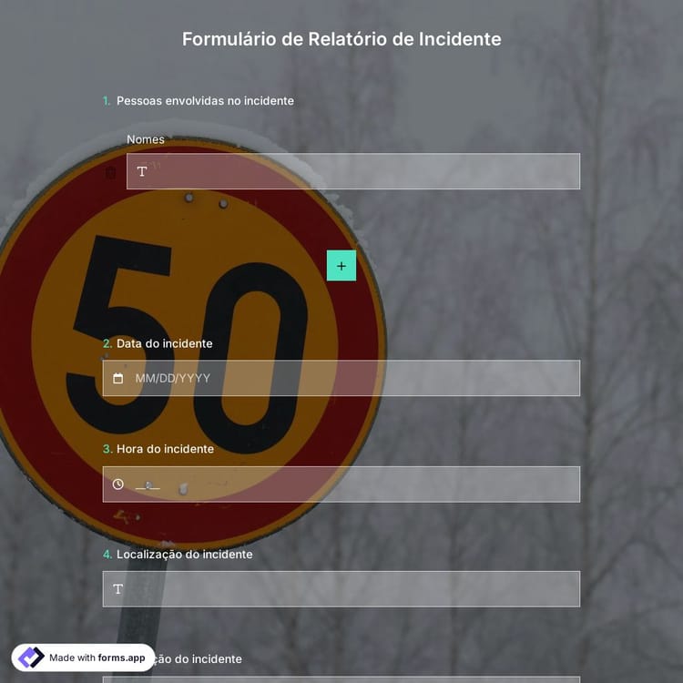 Um formulário de relatório de incidentes ajuda a registrar os detalhes dos incidentes, ferimentos, doenças e quase acidentes no local de trabalho. Os relatórios de incidentes online tornarão o processo de relatório mais fácil e flexível. Selecione a amostra de relatório de incidente gratuita do forms.app e tome ações corretivas mais rapidamente!