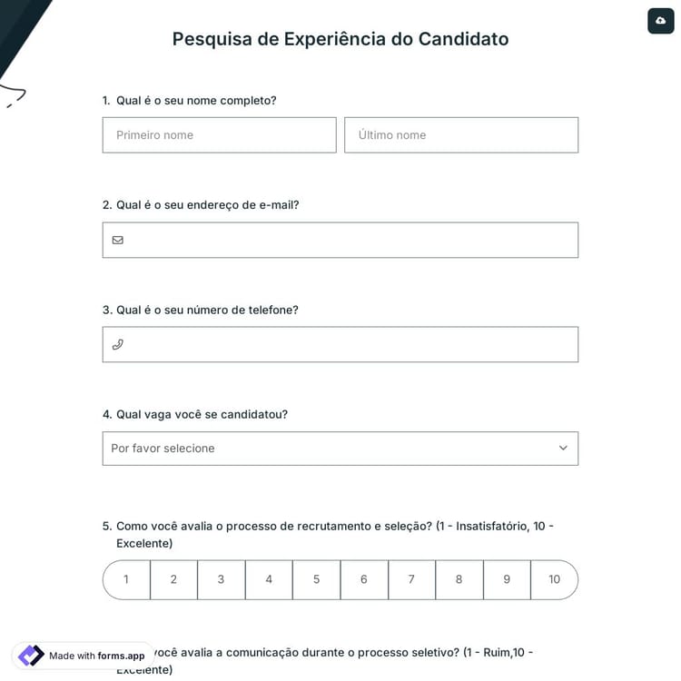 Ao usar o forms.app, você terá uma maneira simples e poderosa de criar pesquisas online. O forms.app oferece uma interface de usuário simples que permitirá que você crie sua pesquisa rapidamente. Graças ao seu design básico, você poderá navegar facilmente pelo forms.app e encontrar o que procura sem problemas. No forms.app, você pode: