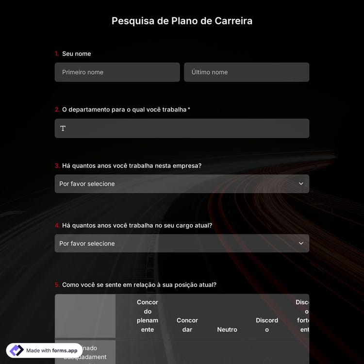 Como criar uma pesquisa de plano de carreira melhor no forms.app?