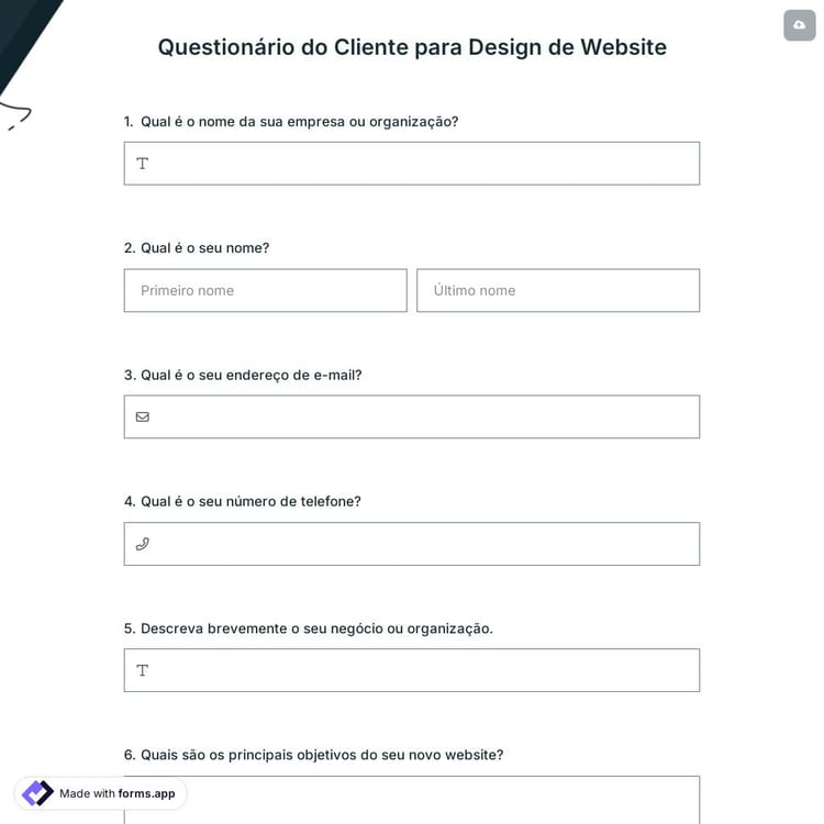 Um questionário de cliente de design de site pode oferecer várias vantagens tanto para o cliente quanto para o designer. Ele ajuda o cliente a esclarecer seus objetivos e metas para seu site. Por outro lado, ajuda o designer a entender as necessidades e preferências do cliente de forma mais clara. Isso pode permitir que o designer crie um site que atenda melhor aos objetivos e expectativas do cliente.