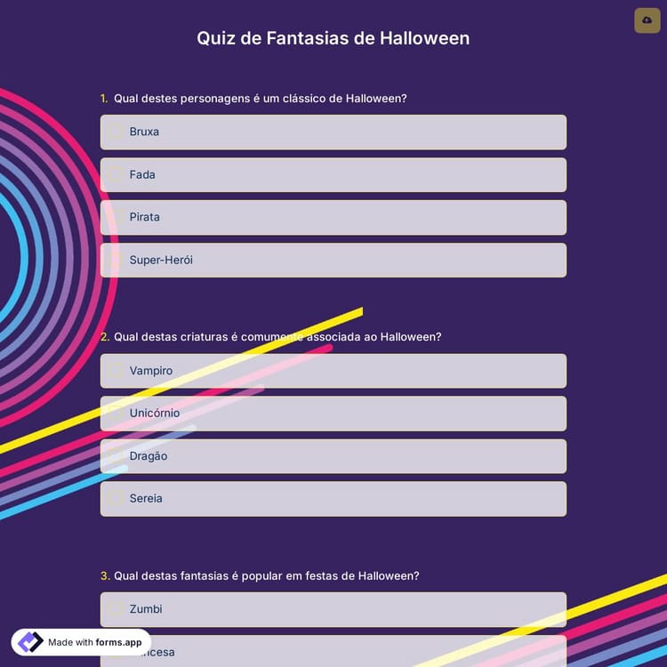Usar o quiz de fantasia de Halloween é uma maneira divertida e simples de envolver seus amigos, familiares e colegas na empolgação de escolher sua fantasia de Halloween. Além disso, é uma ótima oportunidade para envolver todos na empolgação de organizar sua festa de Halloween. Use este modelo de quiz de fantasia de Halloween gratuitamente!