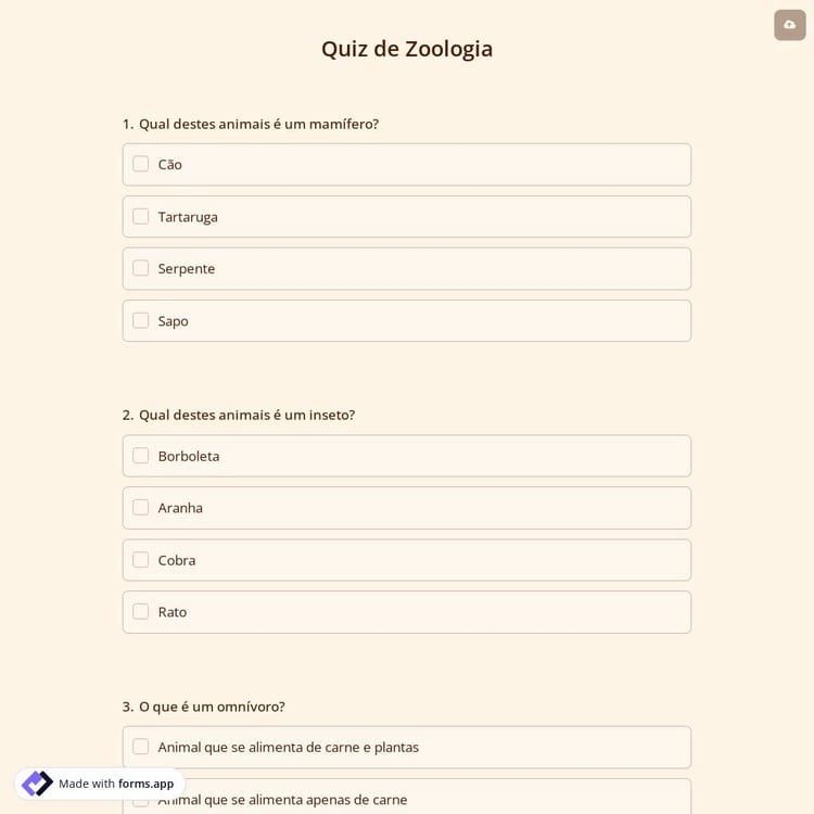 A vantagem de usar um modelo de quiz criado pelo forms.app é que ele fornece uma plataforma fácil de usar que permite que você crie seu próprio quiz online. Isso pode ser usado por professores que não estão familiarizados com tecnologia ou que estão apenas procurando uma maneira fácil de começar a criar seus próprios quizzes. Com o forms.app, você pode ter algumas vantagens;