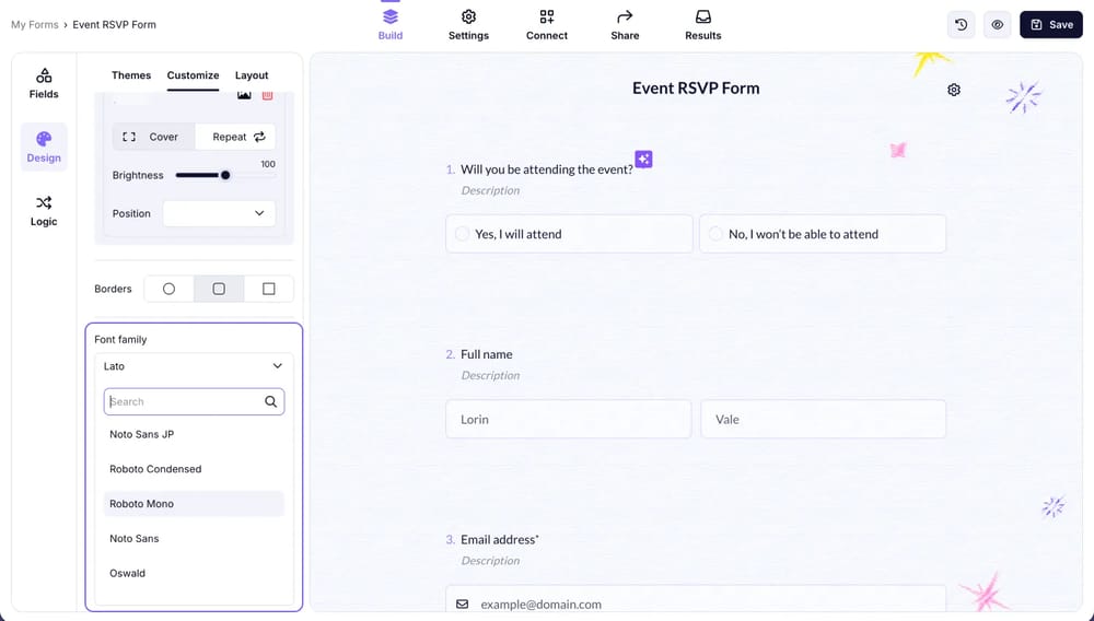 Neden forms.app tam yazı tipi kontrolü sunar?
