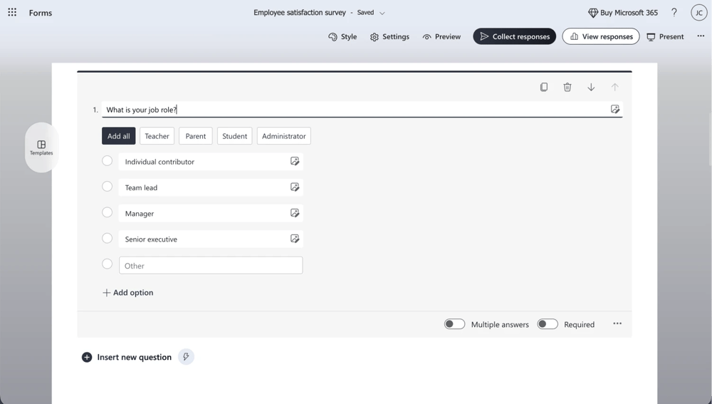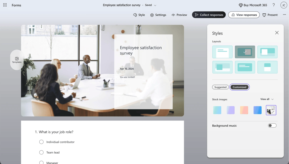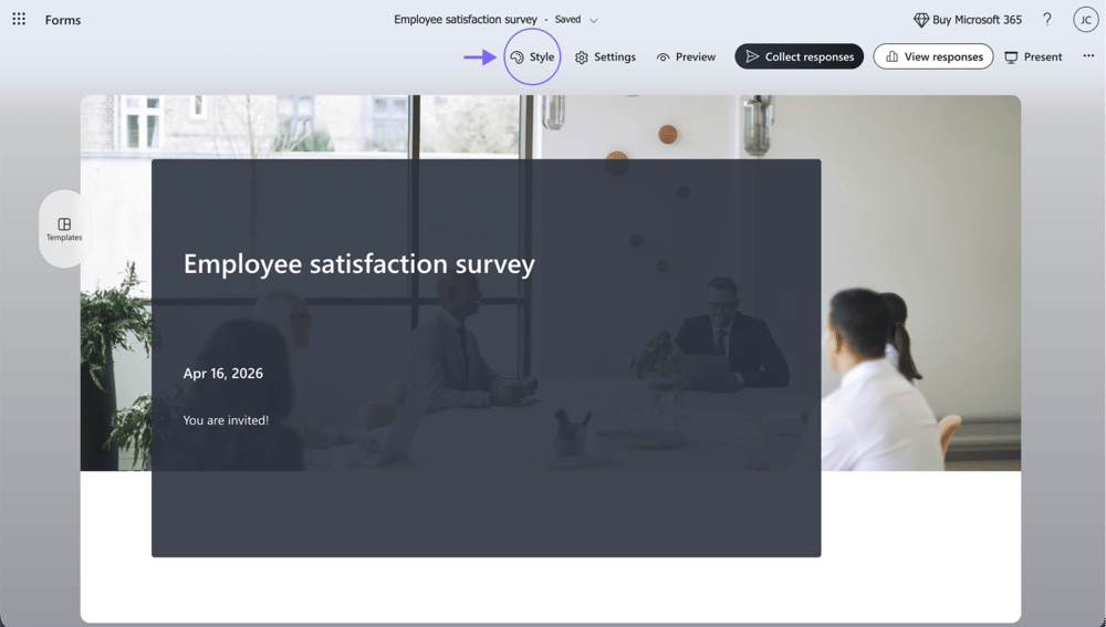 1. Formunuzu açın veya bir Microsoft Forms şablonu seçin.