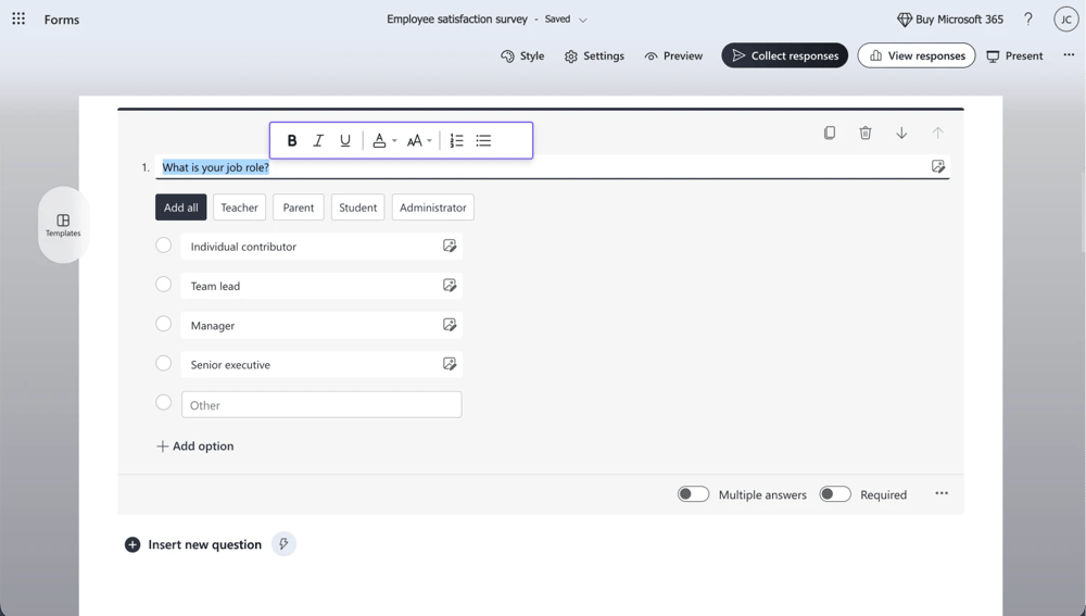 Microsoft Forms'da yazı tipi nasıl değiştirilir (adım adım)