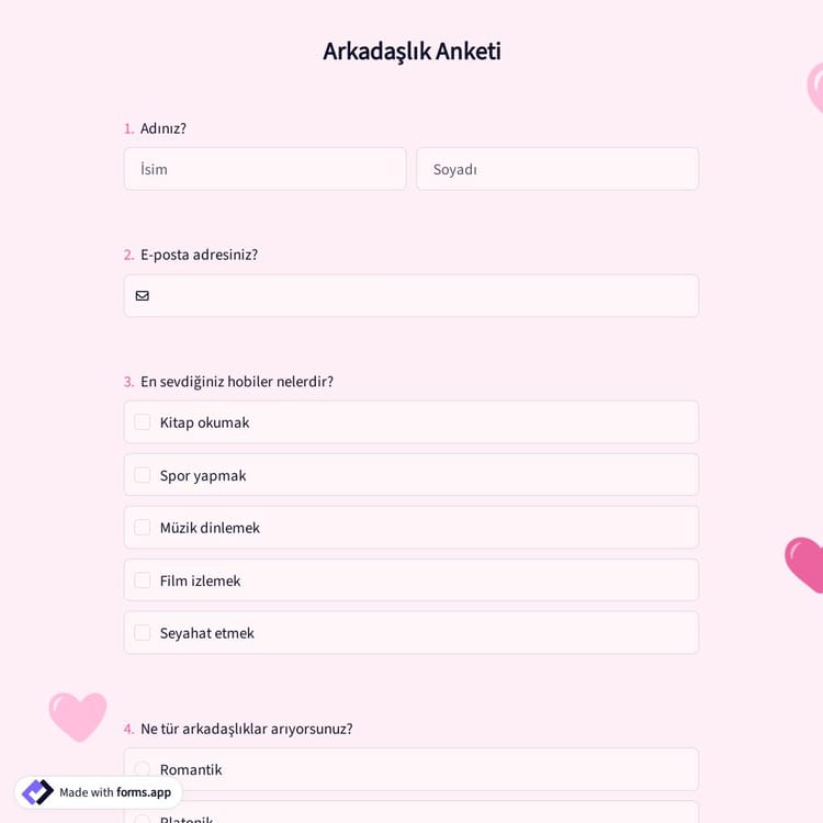 forms.app'te nasıl çevrim içi arkadaşlık anketi oluşturabilirim?