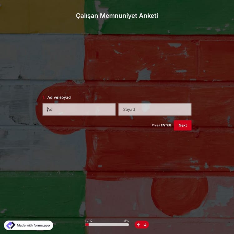 Şirketin işlerlik kazanması ve çalışanlardan en iyi performansın alınması için çalışan memnuniyeti esastır. Yüksek çalışan morali, sağlıklı bir iş yerine ve daha başarılı ekiplere sahip olmanızı sağlayacaktır. Çalışan memnuniyeti anketi ile memnuniyet seviyelerini kolayca ölçebilir ve çalışanlardan geri bildirim alabilirsiniz. Daha hızlı bir anket hazırlama süreci için, şimdi forms.app'in harika çalışan memnuniyeti anketi şablonunu kullanın!