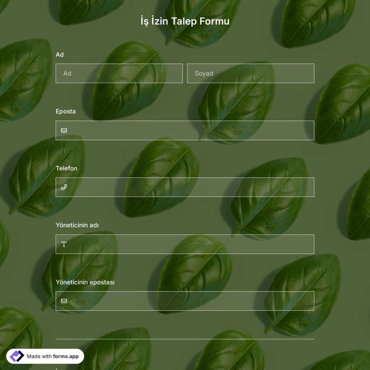 forms.app, işletmeniz için size özelleştirmesi kolay bir izin talep formu şablonu sunar. Böylece form örneğini baz alarak ihtiyaçlarınıza göre kendi formunuzu oluşturabilirsiniz. Ayrıca, daha iyi ve daha verimli bir çalışan izni formu oluşturmak için burada bazı noktaları göz önünde bulundurabilirsiniz.