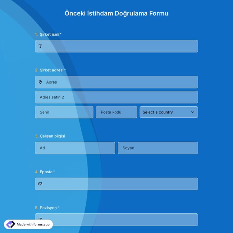 forms.app kullanarak önceki istihdam doğrulama formu şablonu nasıl oluşturulur?